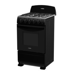 Estufa a gas compacta de 20 pulgadas (51 cm) ideal para espacios pequeños. Presenta un elegante acabado en negro con cubierta sellada de acero inoxidable, facilitando la limpieza y evitando filtraciones. Incluye cuatro quemadores, encendido manual, luz interior, tecnología Easy Clean Pro y Perfect Cook para una experiencia culinaria eficiente y práctica.