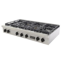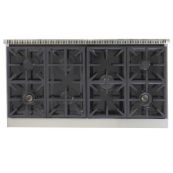 La Kucht KFX489T es una estufa de gas profesional de 48 pulgadas diseñada para ofrecer un rendimiento culinario excepcional, combinando potencia, precisión y un diseño elegante.